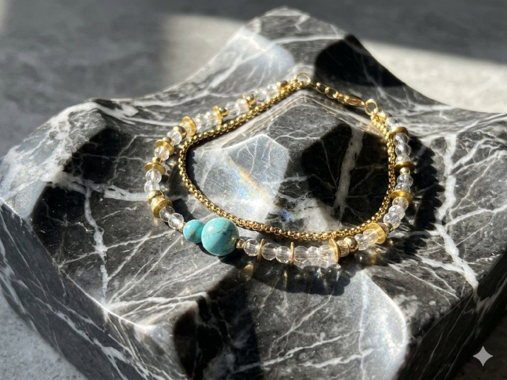 Dwurzędowa bransoletka turkusowa, która natychmiast rozświetla nadgarstek.